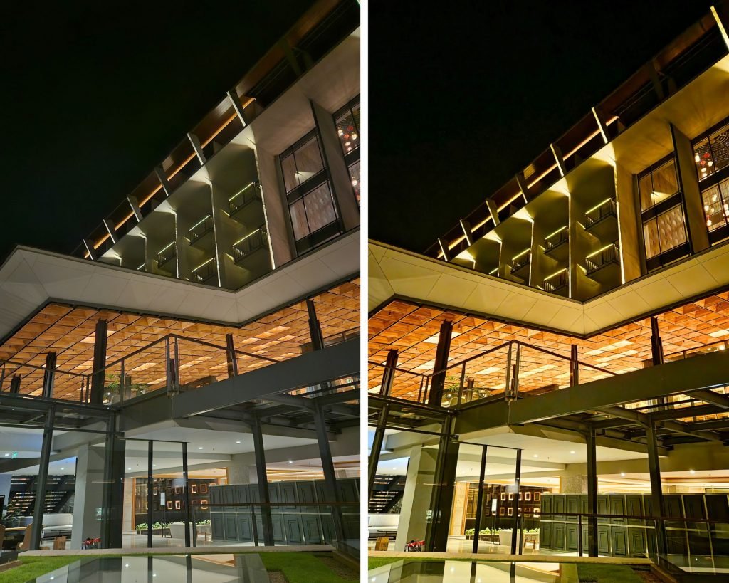 Jepret keindahan arsitektur di malam hari yang tetap jernih berkat Expert RAW