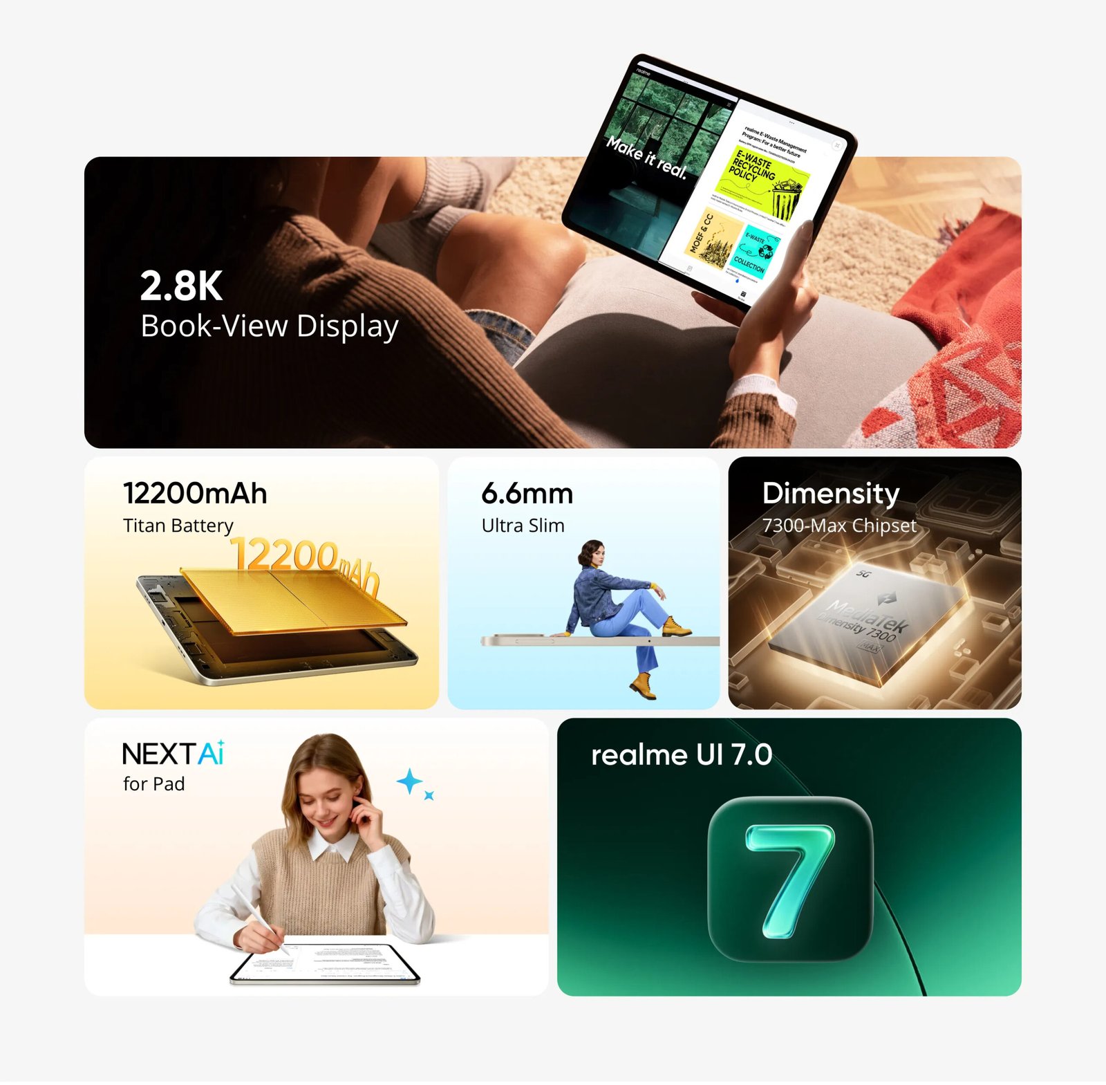 Realme Pad 3 5G Pakai Baterai Jumbo 12,200 mAh, Bisa Tahan Seharian