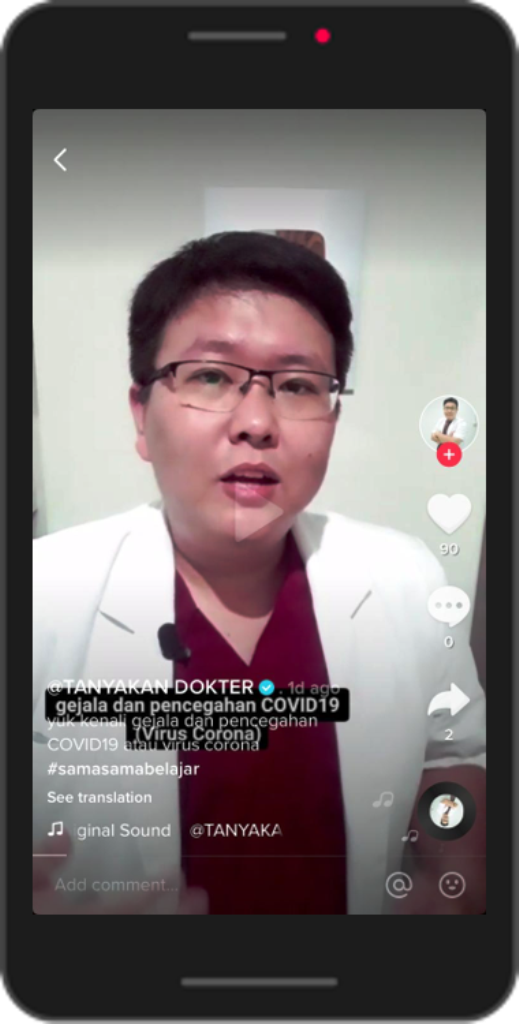 Donny Eryastha, selaku Head of Public Policy, TikTok Indonesia, Malaysia and The Philippines memberikan komentar terhadap konten edukasi melawan Corona yang dibuat oleh beberapa kreator TikTok. “Kami sangat mengapresiasi para kreator yang punya kepedulian terhadap kondisi yang terjadi saat ini dan mau membagikan ilmu mereka melalui akun TikTok. Kami percaya, berbagai fitur yang ada di TikTok dapat membawa hal positif, seperti yang dilakukan oleh kreator-kreator tersebut.