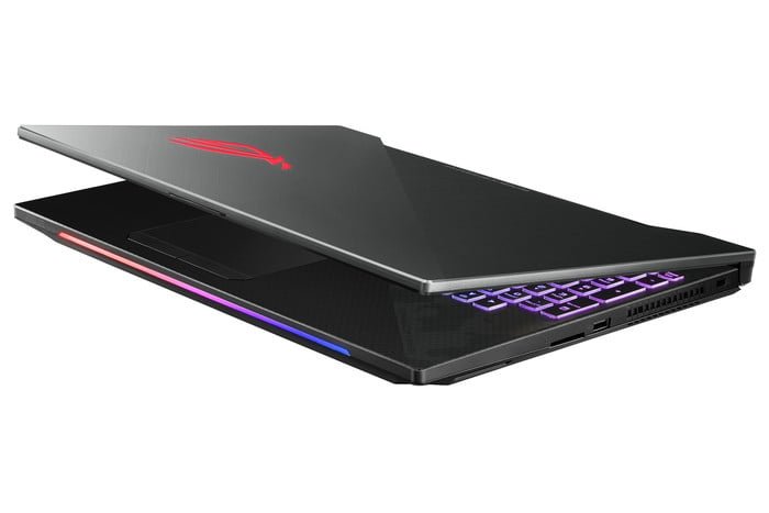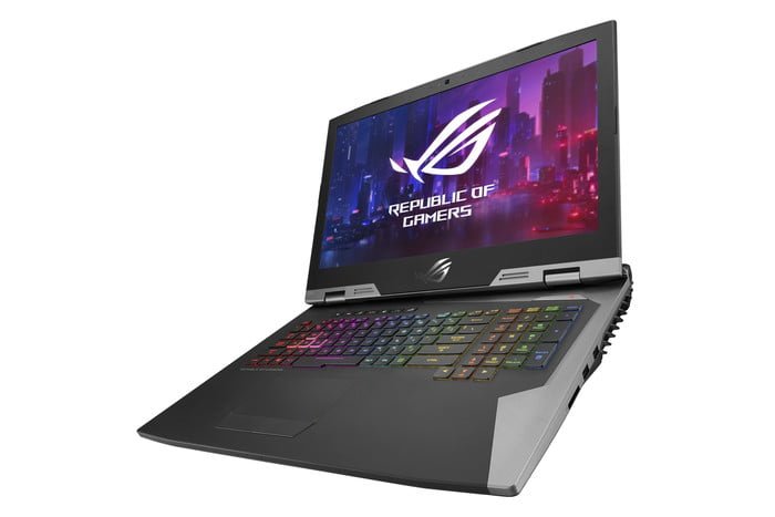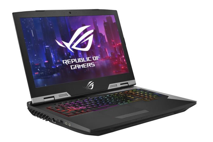 Selanjutnya adalah ROG G703, dengan GPU Nvidia GeForce RTX 20-series terbaru. Laptop gaming ini ditenagai oleh prosesor Intel Core generasi ke-8 dan dilengkapi dengan opsi untuk prosesor Intel Core i9-8950HK yang di-overclock untuk kecepatan hingga 4,86GHz. Dengan layar 17 inci, ia dilengkapi dengan refresh rate 144Hz, waktu respons 3ms, dan dukungan untuk teknologi N-G-sync Nvidia.