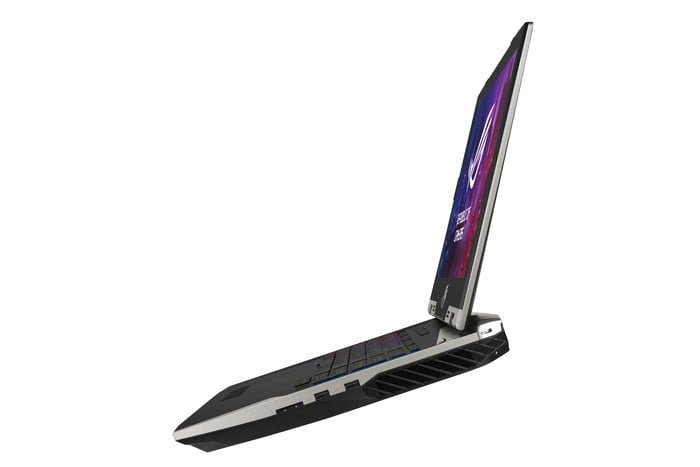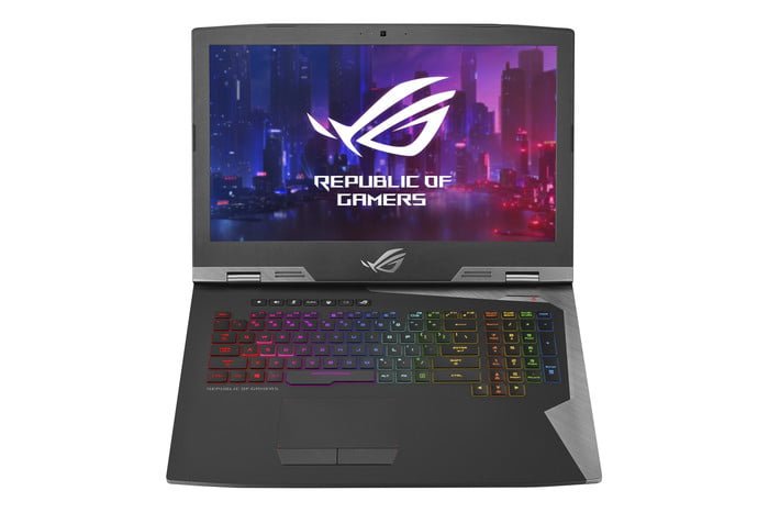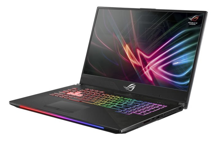 Selanjutnya adalah ROG G703, dengan GPU Nvidia GeForce RTX 20-series terbaru. Laptop gaming ini ditenagai oleh prosesor Intel Core generasi ke-8 dan dilengkapi dengan opsi untuk prosesor Intel Core i9-8950HK yang di-overclock untuk kecepatan hingga 4,86GHz. Dengan layar 17 inci, ia dilengkapi dengan refresh rate 144Hz, waktu respons 3ms, dan dukungan untuk teknologi N-G-sync Nvidia.