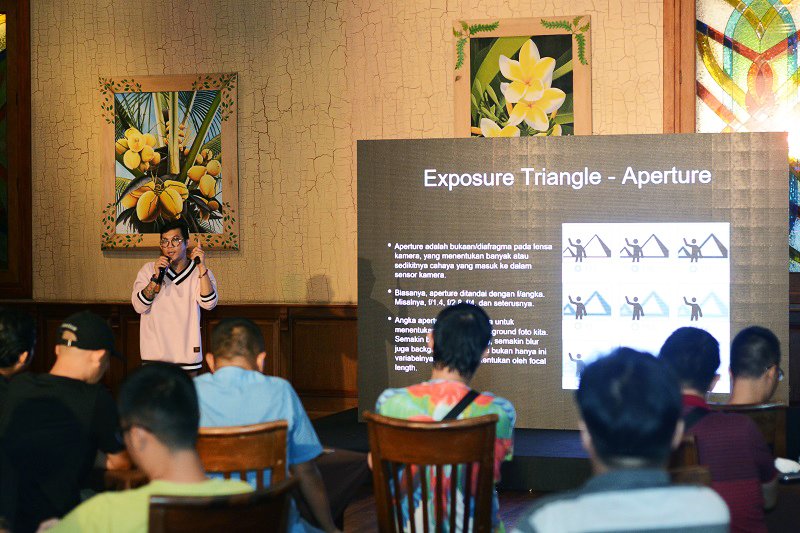 Pada workshop bersama Alexander Thian yang dikenal pula sebagai @Amrazing, menyingkapkan antara lain soal teknik fotografi mendasar, seperti exposure triangle, logika cahaya, yang lalu dikembangkan pada logika memotret saat cahaya minim.