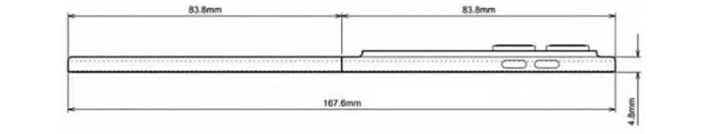 CAD juga membocorkan dimensi layar saat dilipat dan dibuka secara utuh. Ketika layar dilipat, dimensinya berada di ukuran 120,6 x 83,8 x 9,6 mm.. Sedangkan saat layar dibuka, dimensinya menjadi 120,6 x 167,6 x 4,8 mm.
