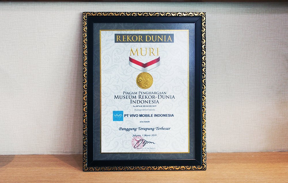 “Peluncuran produk smartphone dengan konsep panggung terapung ini bukan hanya menjadi yang terbesar, namun juga baru pertama kalinya dilakukan di Indonesia. Rekor MURI ini merupakan kali kedua bagi Vivo, dan kami sangat mengapresiasi pencapaian yang telah diraih sejauh ini,” ungkap Osmar Semesta Susilo, Direktur MURI.