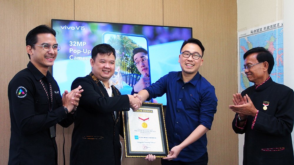 “Vivo Indonesia sangat mengapresiasi adanya penghargaan yang langsung diberikan oleh MURI atas acara peluncuran Vivo V15 beberapa bulan lalu ini. Kami bersyukur karena berkat kerja keras banyak pihak yang terlibat, mulai dari stasiun TV, media, hingga pemerintah Kabupaten Purwakarta, penghargaan ini dapat menjadi prestasi tersendiri dan menjadi nilai tambah bagi Vivo,” ujar Edy Kusuma, General Manager for Brand & Activation Vivo Indonesia.