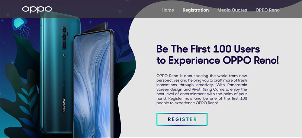 “Untuk mengikuti aktifitas ini, konsumen cukup mendaftarkan diri melalui http://opporeno.oppomobile.id/ nantinya secara sistem akan ada 100 orang yang terpilih untuk mendapatkan perangkat ini terlebih dahulu,” jelas Aryo.