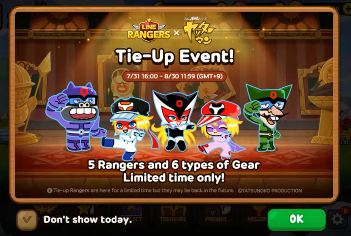 Melalui kolaborasi dengan LINE Ranger, 8 Yatterman No. 1, 8 Yatterman No. 2, 8 Dronbo, 8 Tonzle, dan 8 Boyacchi akan muncul sebagai ranger dalam periode terbatas. Selain itu, babak Yatterman Planet juga akan muncul dan bisa diikuti oleh pemain. Periode kolaborasi ini dimulai sejak 30 Juli lalu hingga 30 Agustus mendatang. Pemain bisa menemukan informasi lebih dari notifikasi di dalam gim.