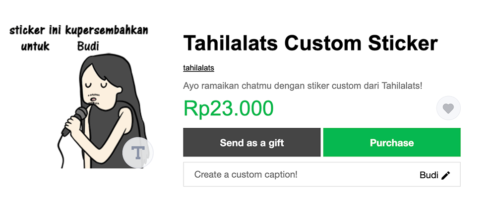 Dengan Custom Stickers, para kreator dapat menambahkan nama, panggilan, atau kata-kata positif yang mereka sukai ke dalam stickers yang tersedia.