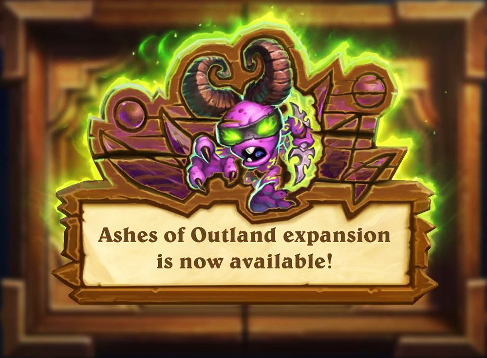 Ashes of Outland memasuki Hearthstone dengan 135 kartu baru yang berisi monster yang jahat, berkepribadian kejam, dan spell berkekuatan Fel juga artefak yang tercipta dari dunia yang hancur ini.