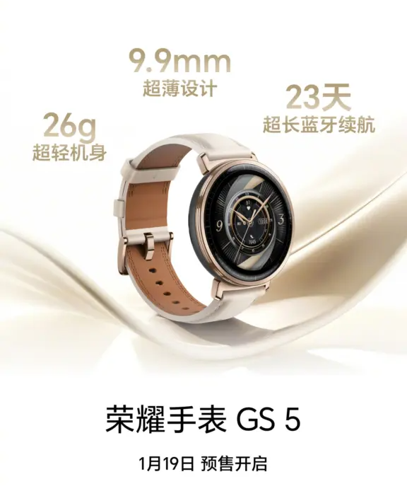 Untuk bagian desain memang masih mempertahankan model bulat khas seri GS. Tapi pada Watch GS 5 ini, Honor membuatnya lebih ramping dengan ketebalan hanya di 9,9 mm serta bobot 26 gram. Serta layar yang digunakan juga tergolong ringkas di rentang 1,43 inch berpanel AMOLED.