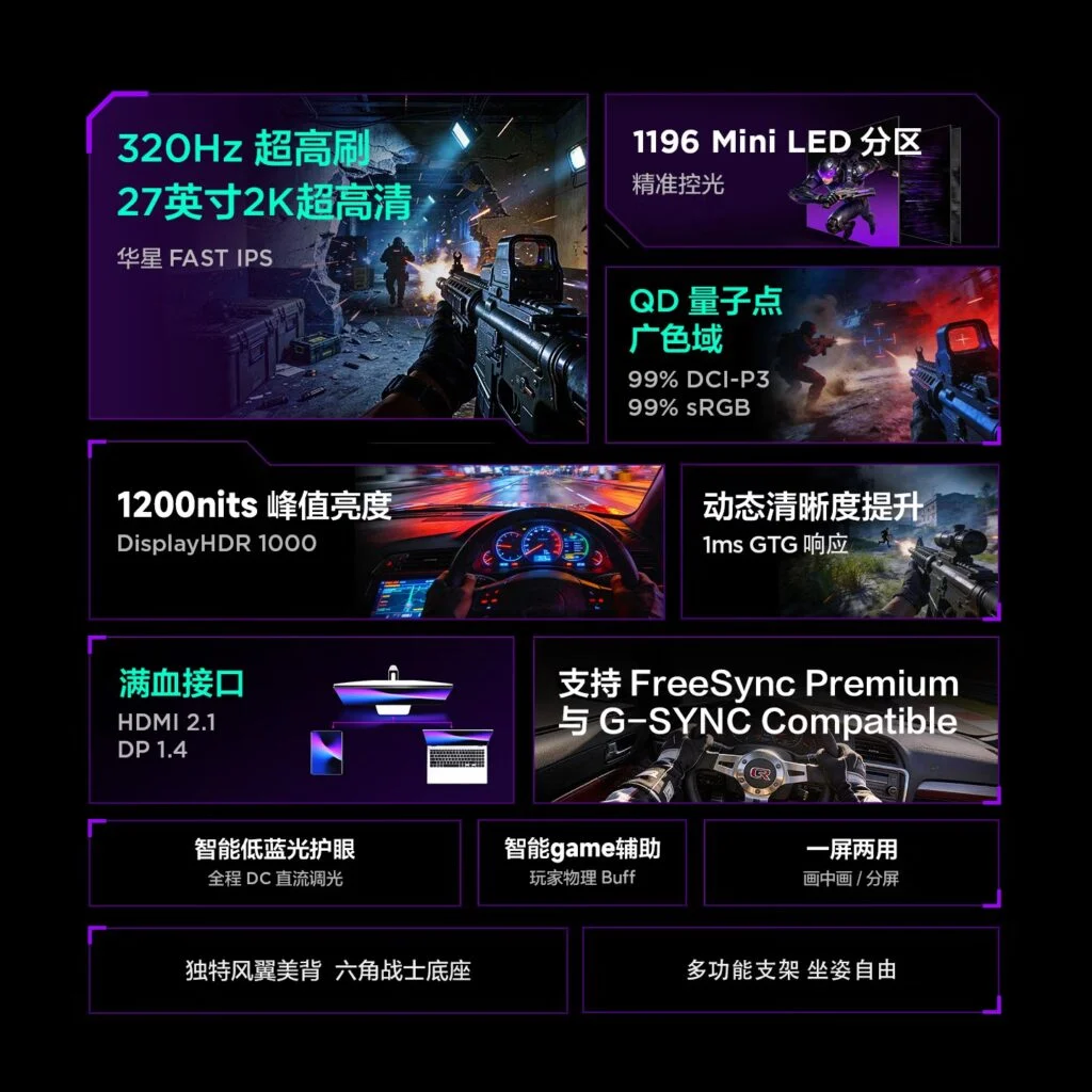Kemudian monitor gaming ini punya teknologi lampu latar QD-Mini LED yang punya 1.196 local dimming zones. Teknologi ini berfungsi meningkatkan kontras secara signifikan serta meminimalisir efek haloing. Dan soal kecerahan, monitor ini bisa mencapai tingkat puncak hingga 1.200 nits dan punya sertifikasi VESA DisplayHDR 1000.